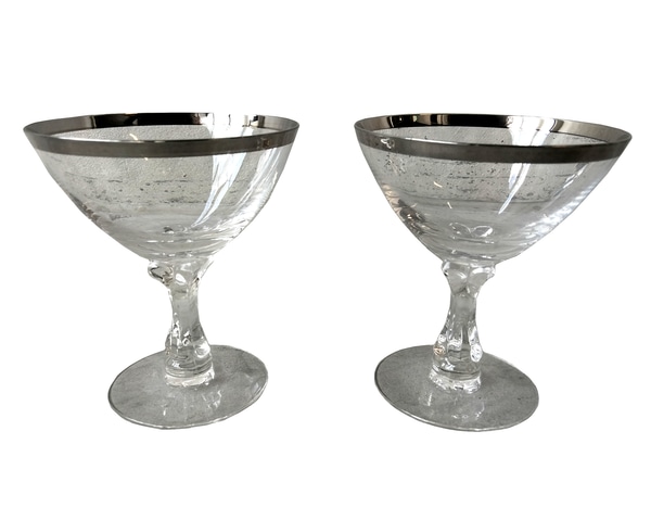 Small vintage Fostoria (silver-rimmed) crystal glass. Set of 7.