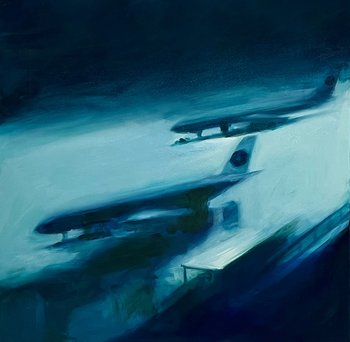 original painting on stretched canvas. 1st panel in La Jetee Diptych.