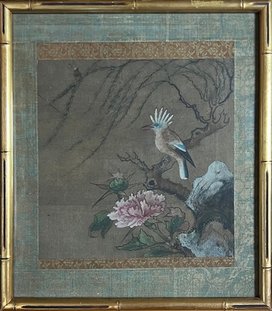 MISART-Antique Japanese Kakemono Bird Peony Watercolor